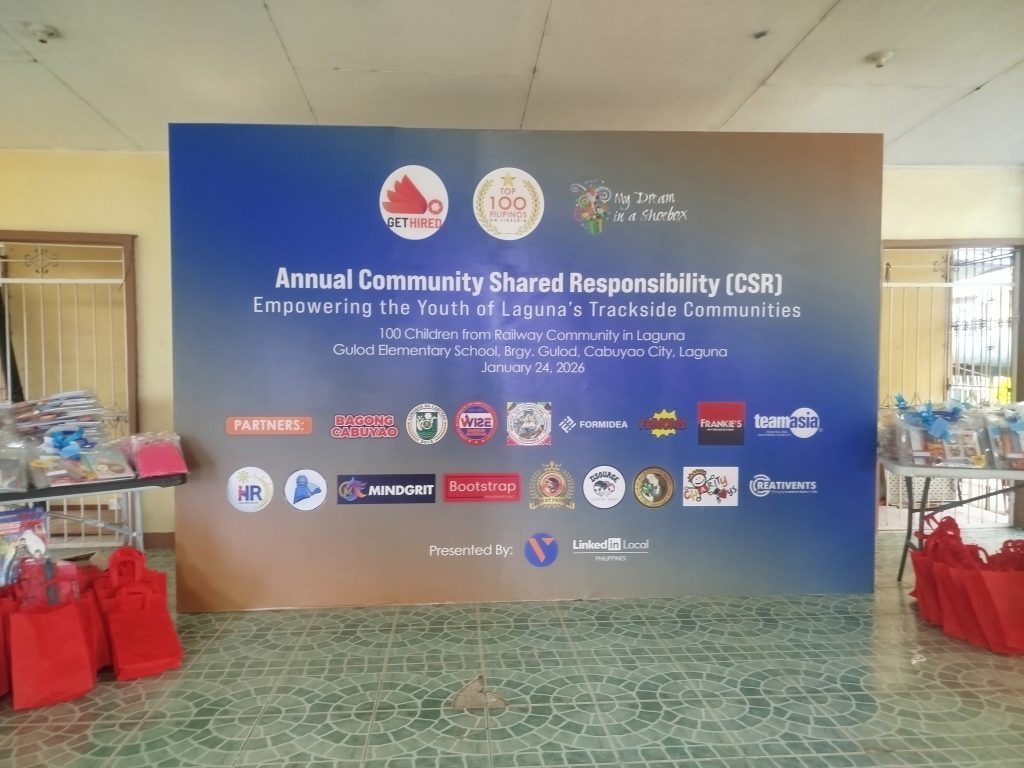 Last January 24, 2026, Bootstrap.ph had the privilege of supporting the Annual Community Shared Responsibility initiative organized by Top 100 Filipinos on LinkedIn in partnership with GetHired. The outreach was held at Gulod Elementary School in Cabuyao, Laguna, where we spent the day with 100 children from the Railway Community, aged 4 to 12 years old.